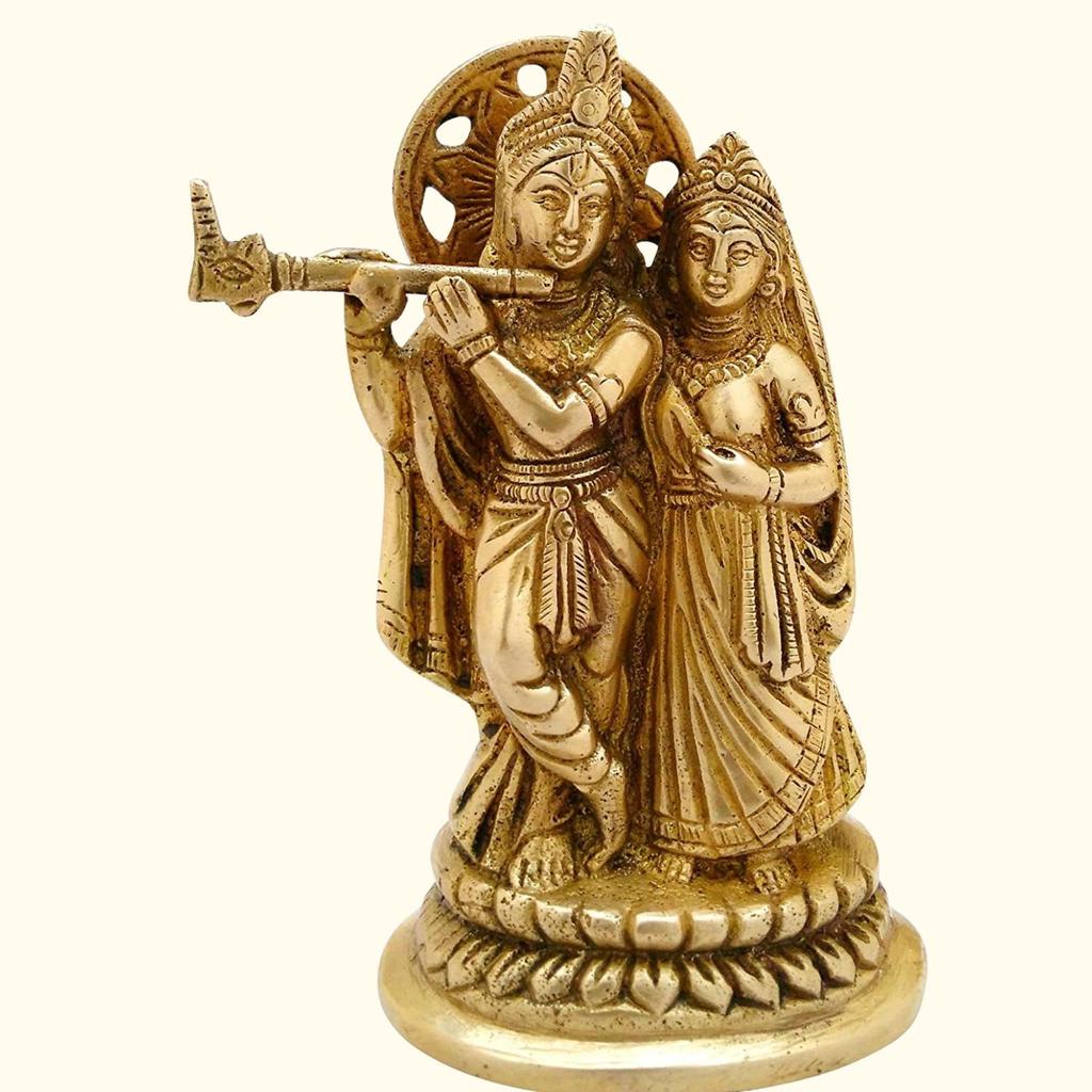 Pure Brass Radha Krishna Ji Idol, Religious Statue, Gold, Size - Standard