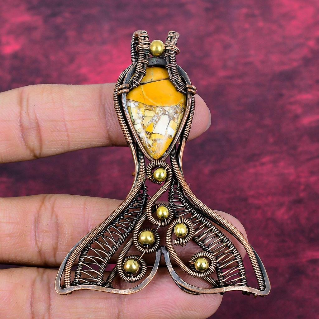 Brecciierter Mookait Edelstein Anhänger Fisch Schmuck Kupferdraht Gewickelter Anhänger