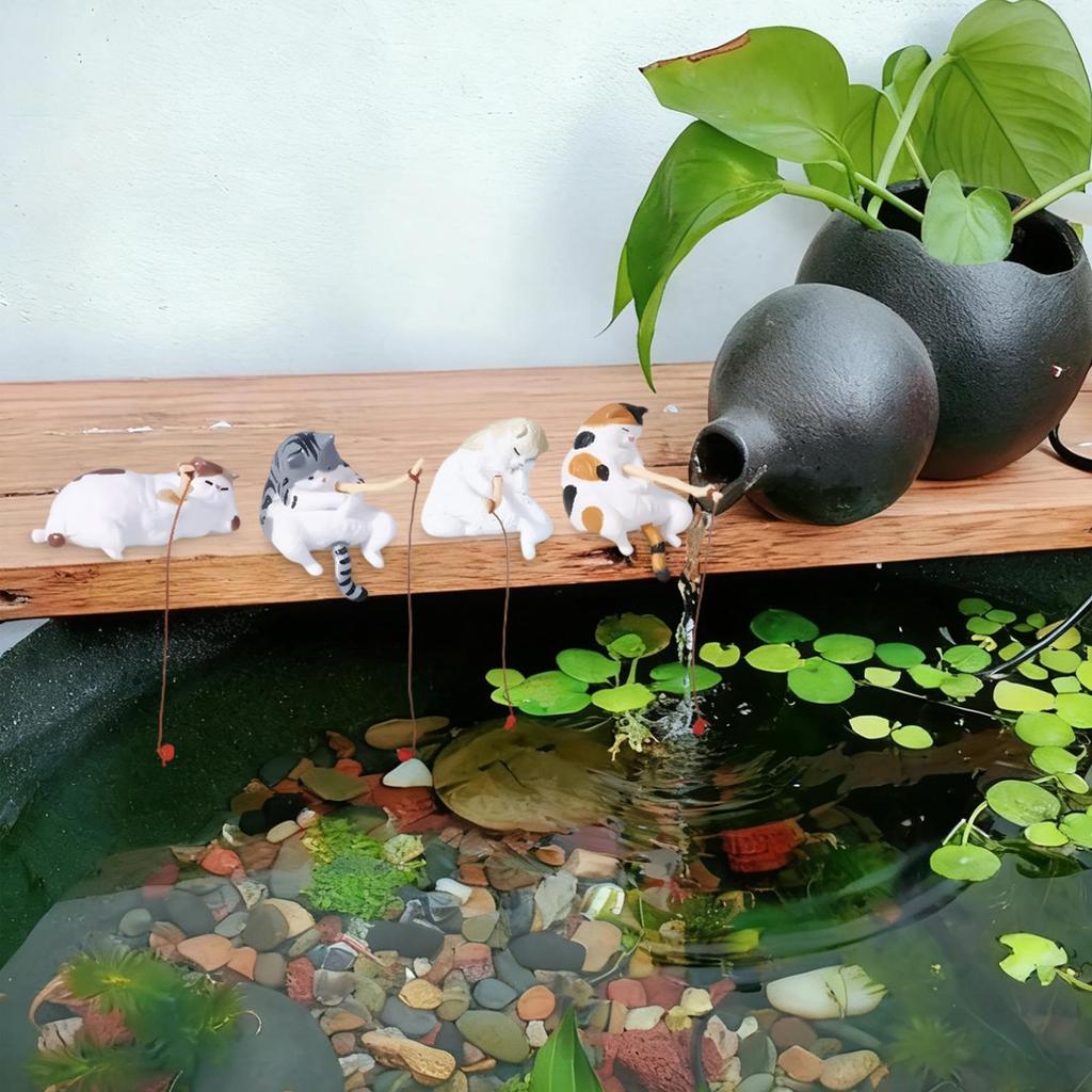 Cat Statue Hand Carved Sculpture Decor Cute Cat Figurines For Family Friends Men Adults Home Shop Desk Aquarium Indoor Display