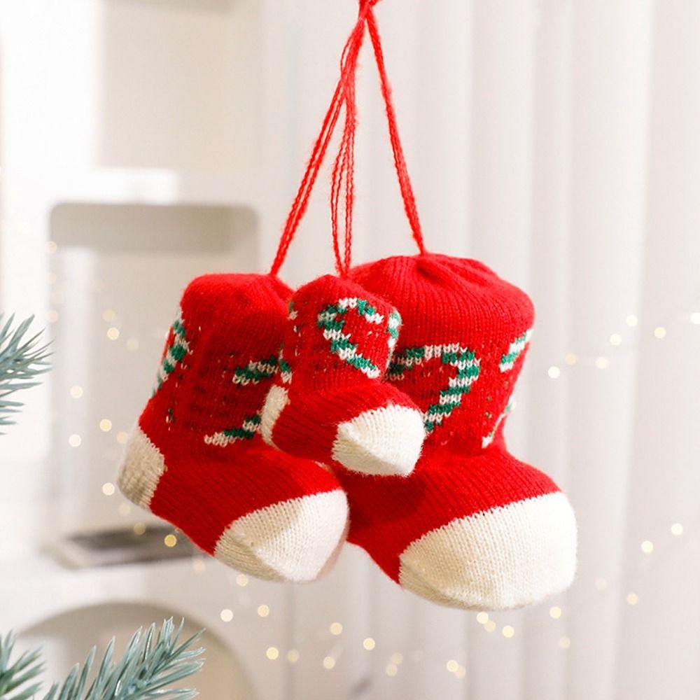 Gestrickter Weihnachts-Stiefel-Anhänger Bunter Weihnachtsbaum-Anhänger Frohe Weihnachten Dekoration