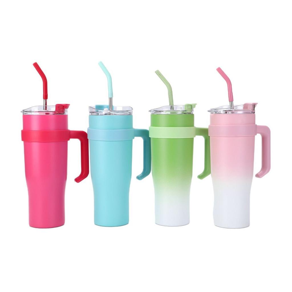 Neuer Strohhalm-Autobecher Big Mac Kälteisolier-Eisbecher 304 Edelstahl Thermosbecher mit Griff