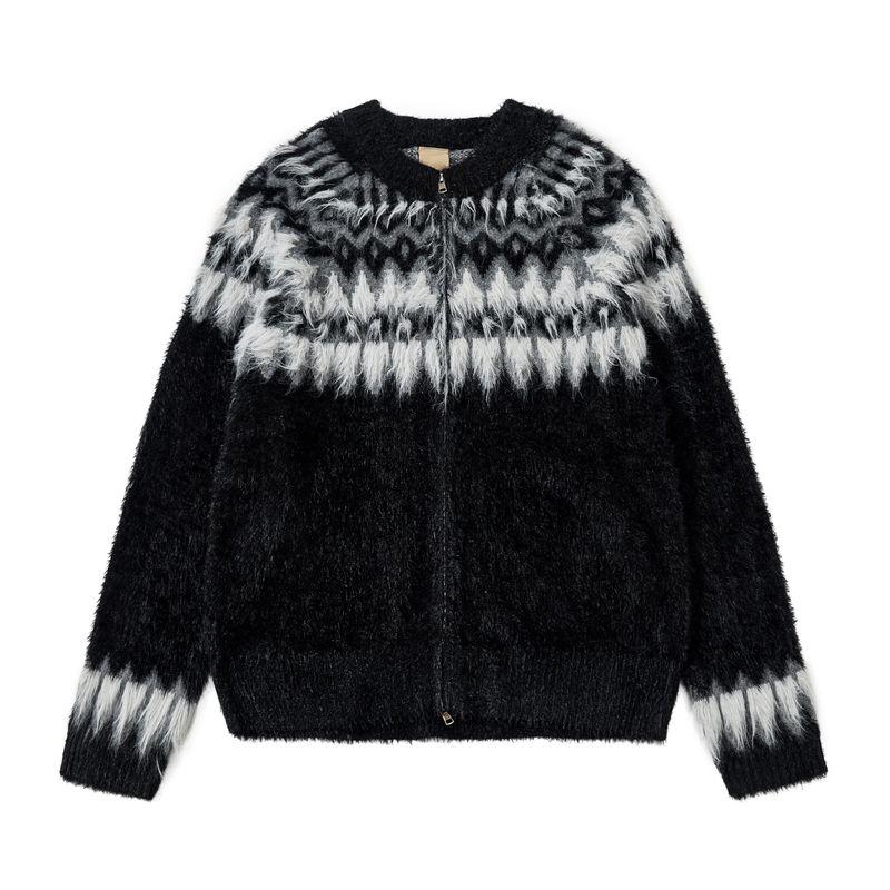 Blaexit Fair Isle Seahorse Wool Knit Cardigan Sweater for Men, Winter Thickened Warm Lazy Style Sweatshirt