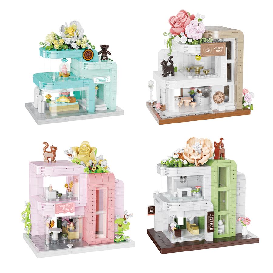 Miniature Street View Flowers House Building Blocks Mini Bricks Educational Toys DIY Ornaments Gifts Set