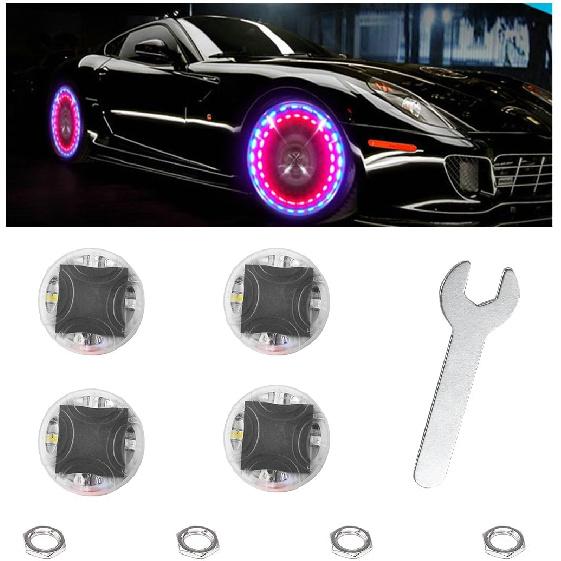 4PCS Car Tire Wheel Lights, Colorful Flashing LED Air Valve Cap Lights With Motion Sensor, Solar Waterproof Tire Light Gas Nozzle For Truck Bike