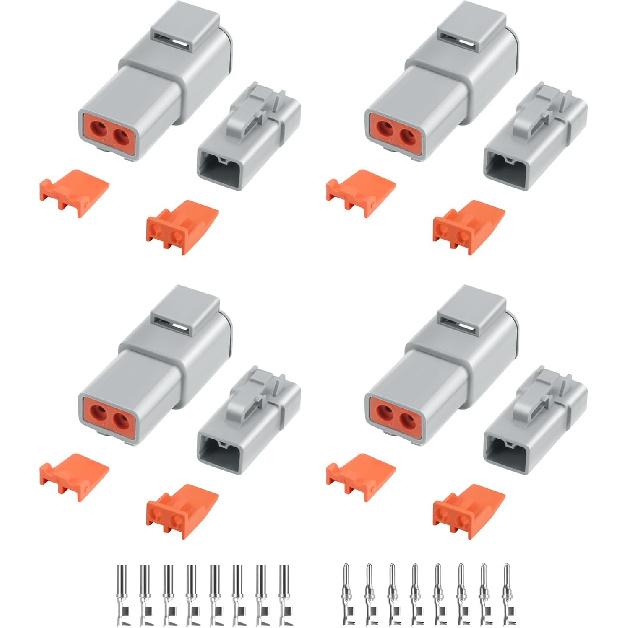 32 PCS Deutsch DTP Connector Kit 2 Pin Automotive Waterproof Connectors 4 Sets With Size 12 Stamped Contacts Gauge 14-12 AWG Wire Size,25A