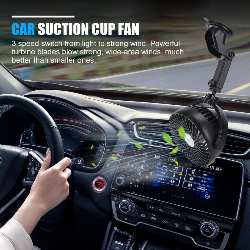 5.Effortless Mounting Solution: A robust suction cup assures quick and secure attachment for the car fan, eliminating the need for tools while ensuring stable placement and effortless setup for improved convenience