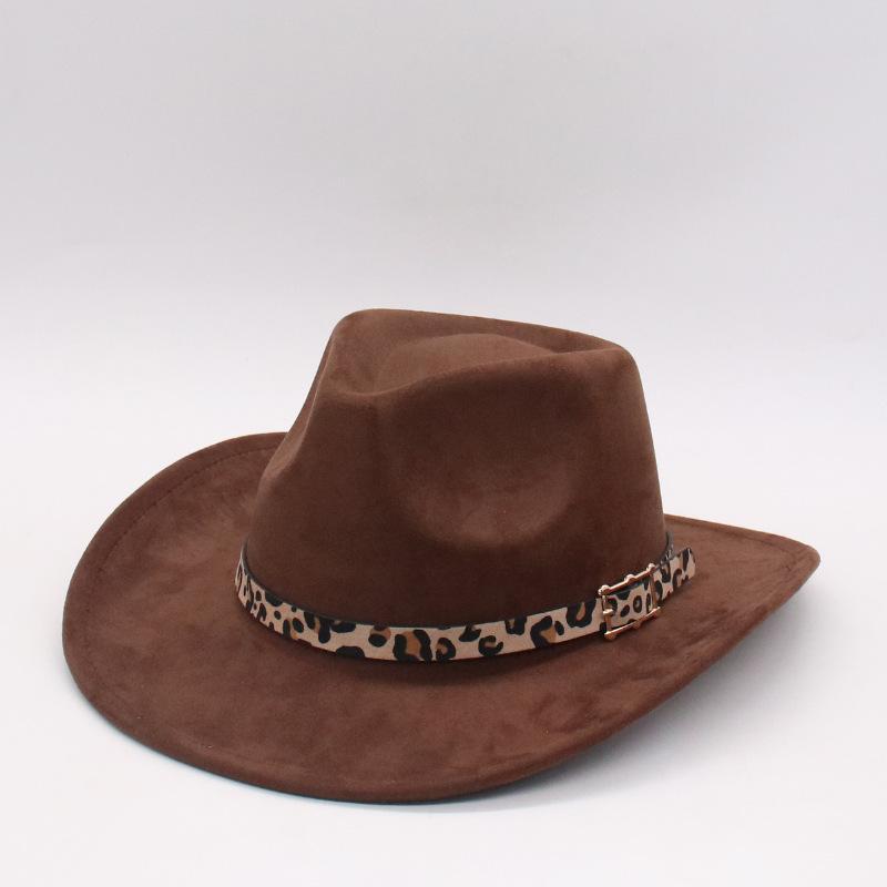 Neuer Leopardenmuster Gürtel Saum Zylinder Jazzhut Retro Schwarzer Woll-Jazzhut Flache Krempe Große Krempe Hut