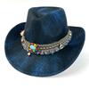 Außenhandel Minderheit Zylinder Fransen Western Cowboyhut Jazzhut Türkisfarbener Filzhut Outdoor Sonnenschutzhut