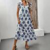 Vacation Elegant Retro Style Women's Dress with Ruffled Small Flying Sleeves and Geometric Print