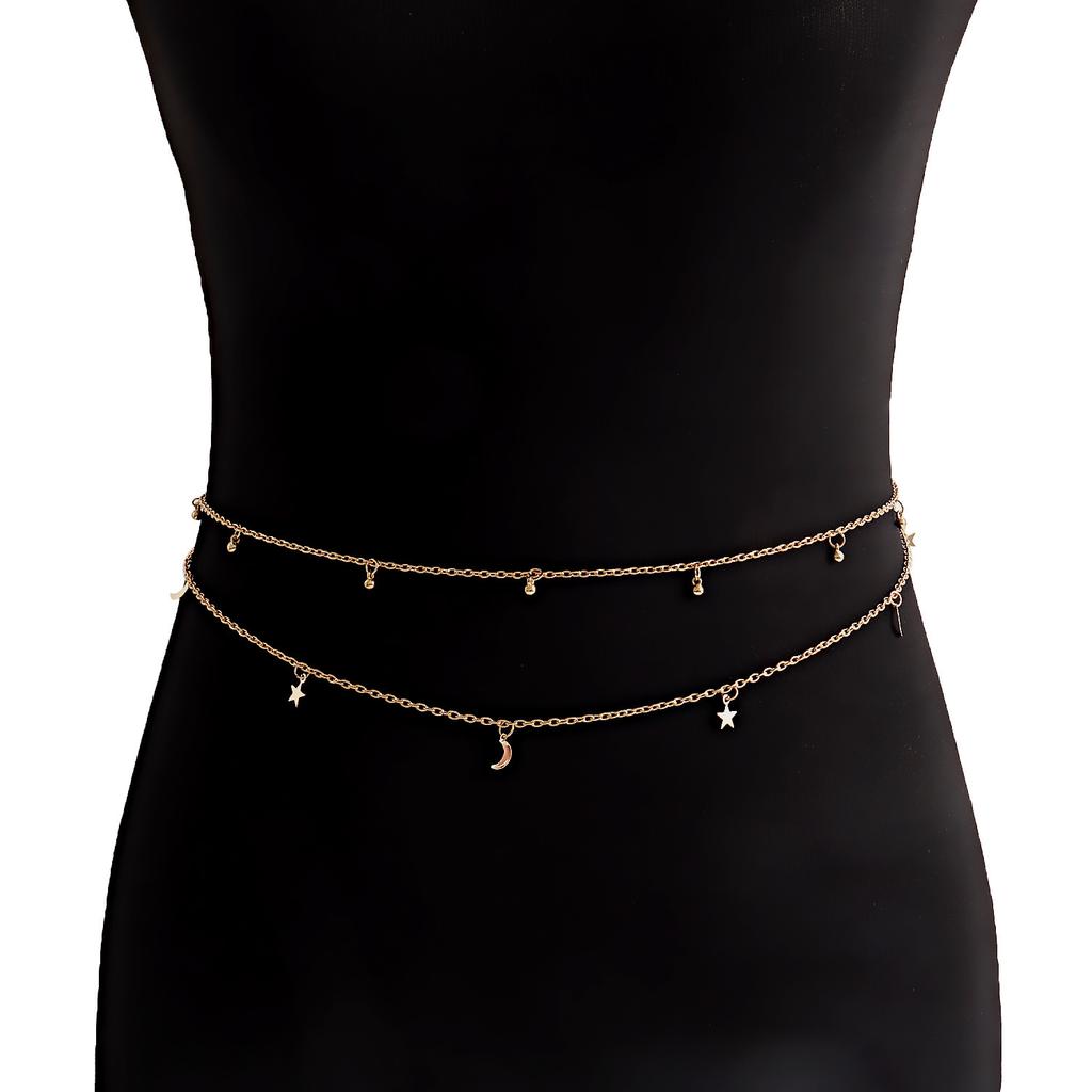 Europe, America, punk double-layer star crescent pendant, Xiaoxiang chain, belt, waist chain female manufacturer spot