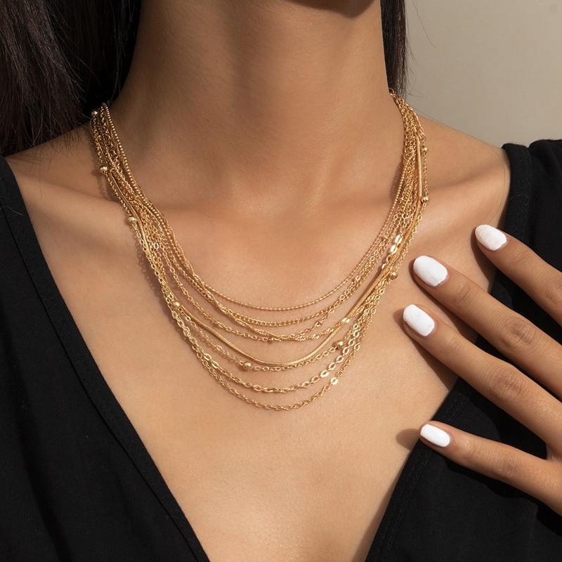Fashion versatile metal layer collar accessories, simple and trendy multi-layer thin chain necklace