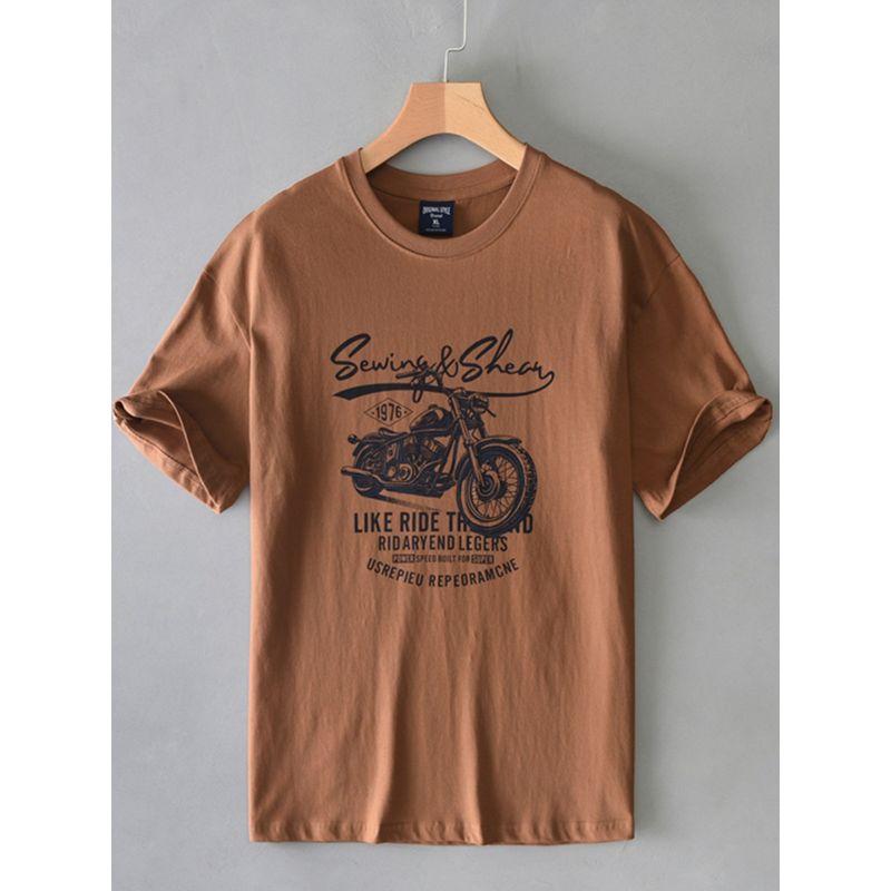 Summer American Short Sleeve T-Shirt Men Heavy Weight Pure Cotton Fashion Brand Printing Parka Loose Crew Neck Half Sleeve T-shirt Best Selling
