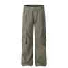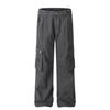 Blaexit American-Style Deconstructed Gray Flared Cargo Pants with Multi-Pocket Design, Straight-Leg Cleanfit Pants, Trendy