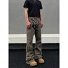 Blaexit American High Street Paris Bootcut Smoky Gray Flared Jeans Men's Vintage Straight-Leg Scimitar Pants