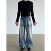 Blaexit American Retro Cleanfit Black Flared Jeans for Men A-Line Straight Loose Baggy Pants