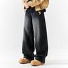 51 Hip-Hop Fleece-Lined Jeans for Men, Winter American Style Trendy Brand, Vintage Tie-Dye, Loose, Thickened, Scimitar Wide-Leg Long Pants