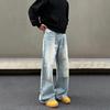 Blaexit American Retro Washed Light Blue Jeans Men's Straight-Leg Slightly Flared Casual Cleanfit Pants