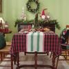 25 Custom-Dyed Polyester-Cotton Festive Christmas Red Grid Gold Silk Decorative Fringed Coffee Table Tablecloth Dining Table Cloth