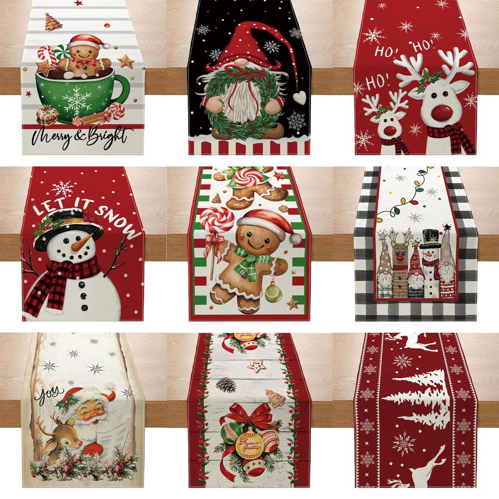 Amazon Weihnachts-Tischläufer Leinen Druck Festlich Küchentisch Tischdecke Wohnzimmer Tischdecke