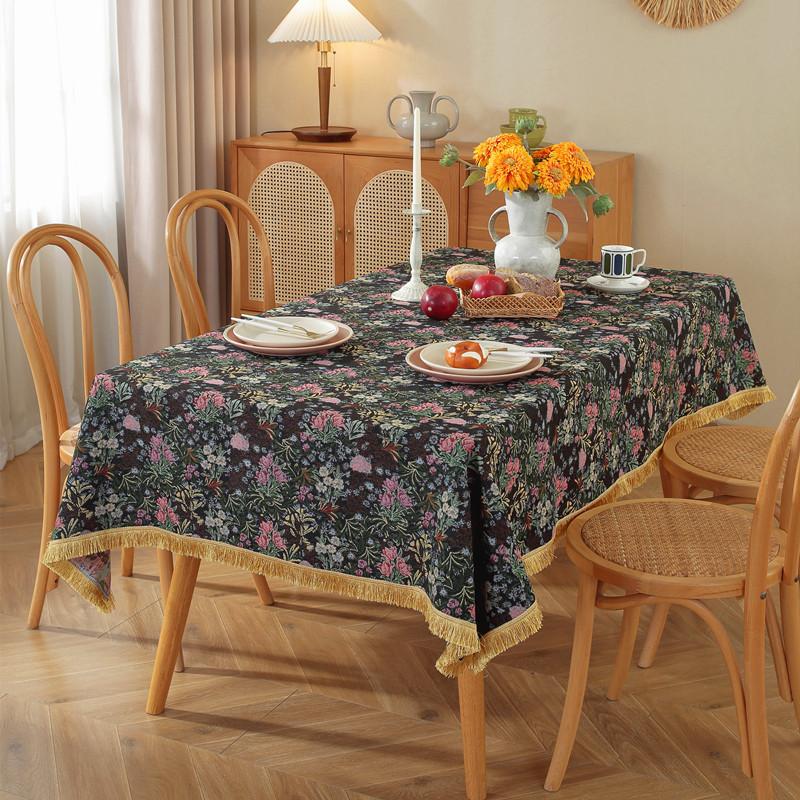 Polyester Cotton Color Woven Jacquard Flower Geometric Gold Fringed Tablecloth Rectangular Coffee Table Tablecloth Dining Table Cloth