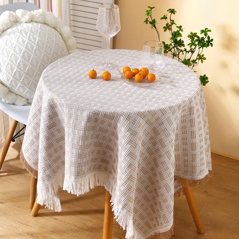 Small Round Table Coffee Table Cloth Ins White Tablecloth Light Luxury High-End Simple Birthday Arrangement Cotton And Linen Bedside Table Cover Cloth