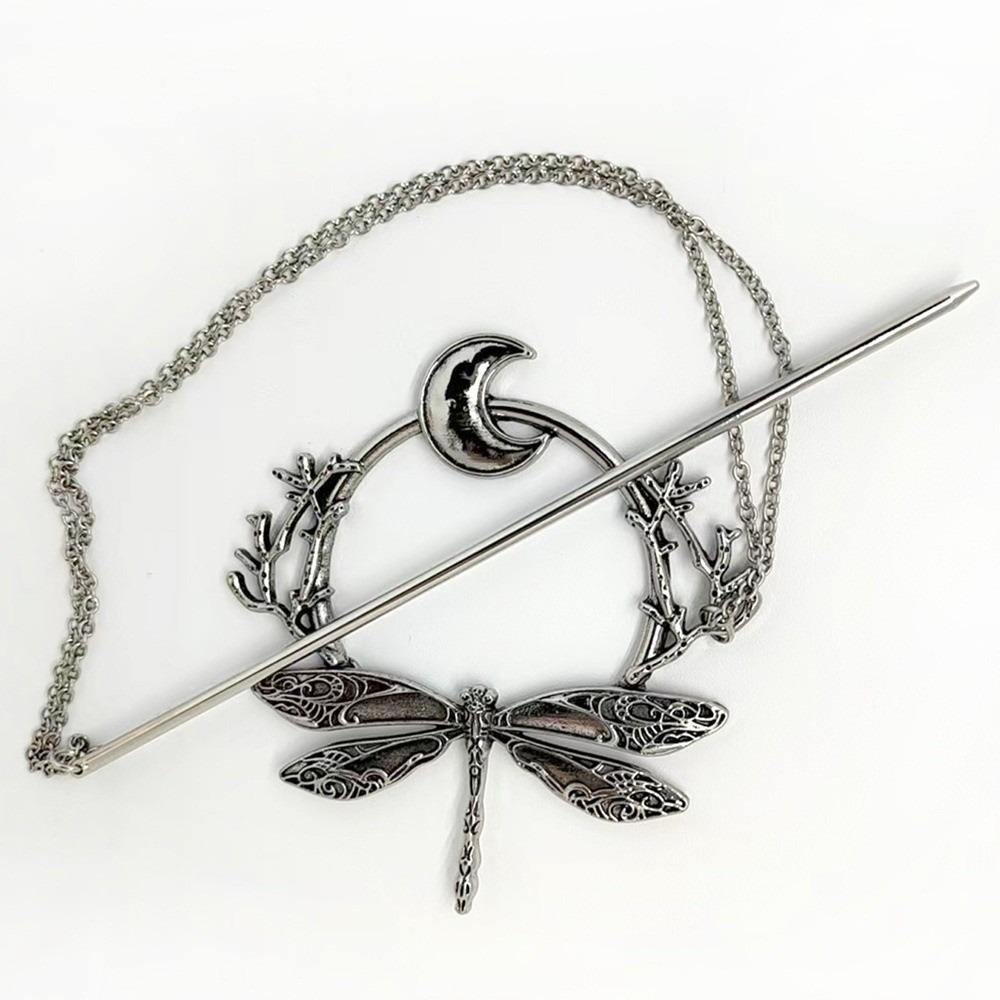 Quasten Design Libellen Haarnadel mit Kette Haarspangen Neumond Haarspange Kopfschmuck