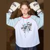 Coolhut Letter Print Raglan Long-Sleeve Patchwork Color-Blocked 2026 Spring Women's T-Shirt Base Layer Top