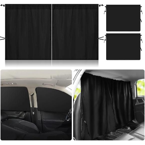 【Car Window Shades for Most Cars】Our set of 3 car curtains including 1 rear seat divider curtain and 2 rear seat side window curtains. The size of our long partition curtain is: 140*80cm/ 55*31in. and the size of the 2 rear window curtains is: 85*65cm/ 33.46*25.59in. Our car privacy curtains are wider in size and larger than the ordinary curtains on the market, and can accommodate a variety of cars, SUVs, pickup trucks and other vehicles.