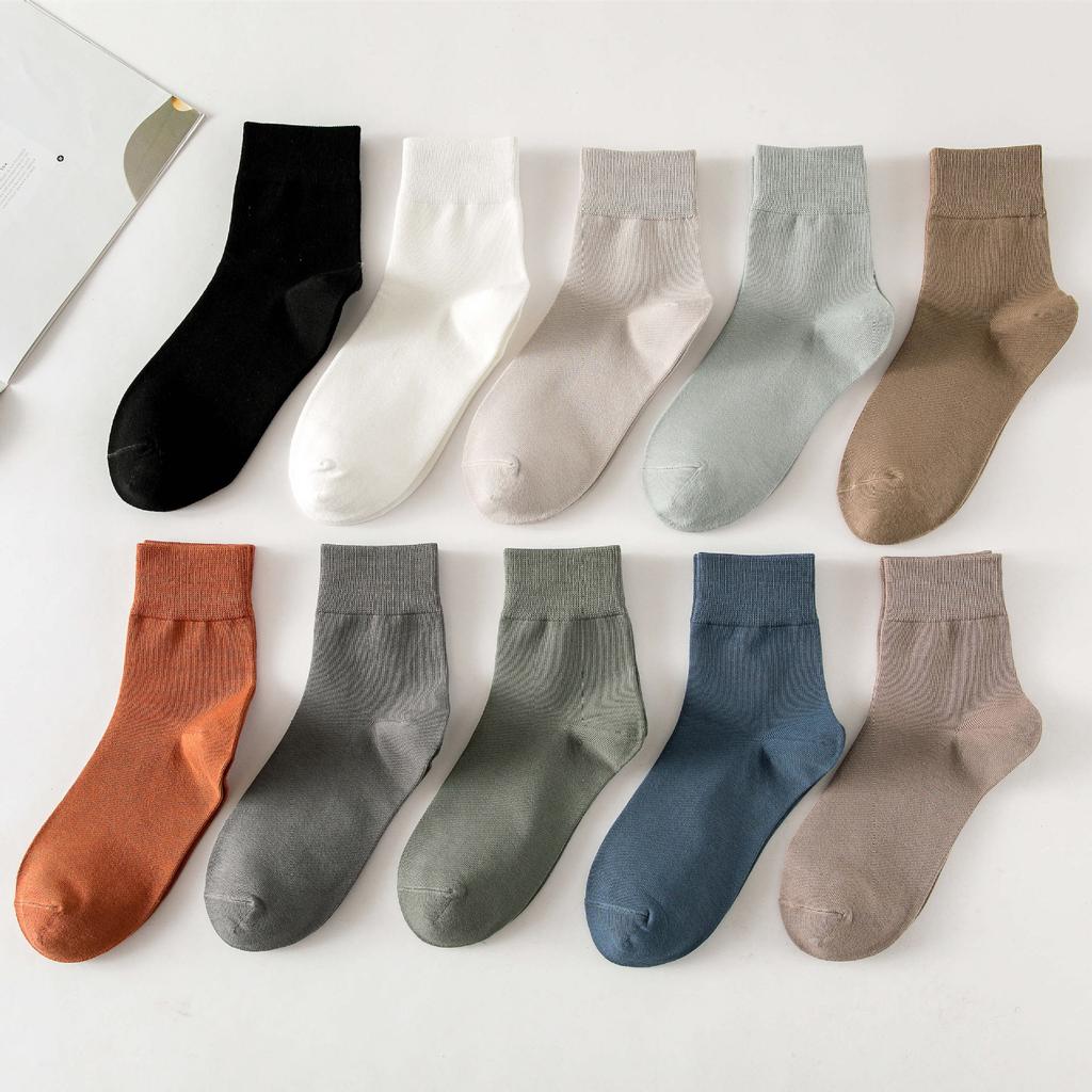 Men'S Cotton Socks, Sweat-Absorbing And Breathable Men'S Socks, Business Casual Versatile Solid Color Short Socks, Medium Tube Socks.