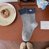 Button Bow Socks Medium Tube Socks Tide Cotton Versatile College Style Striped Contrasting Color Stacking Socks