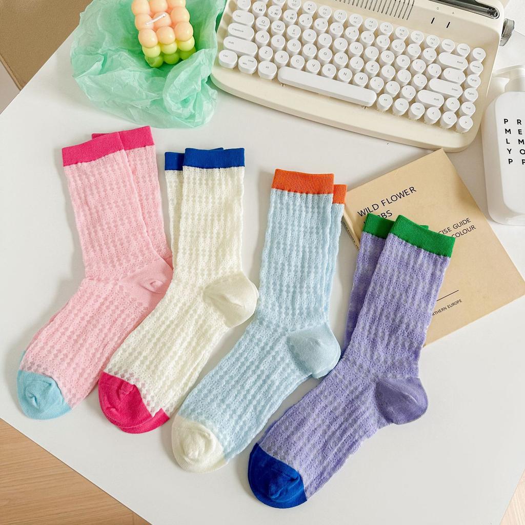 Xiaohongshu Same Summer Thin Mesh Breathable Cutout Socks Trendy Versatile Simple Contrasting Mid-Leg Socks