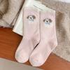 Rosa Welpen Plüsch Socken Wintersocken Plüsch Verdickt Warm Nahtlos Mittelrohr Zuhause Cartoon Schlaf Socken