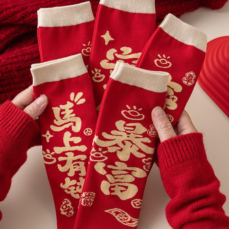 The Same Year Of The Horse Red Socks Pure Cotton Boneless Medium Tube Socks New Year'S Gift Box Big Red Stockings