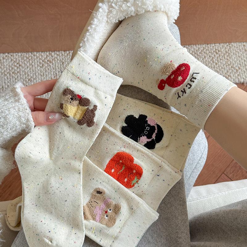 Socks Stacking Socks Pure Cotton Season Idea Yarn Cute Three-Dimensional Cartoon Cotton Medium Tube Socks Socks Industry