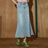 Coolhut Retro Light-Colored Denim Ruffle Fishtail Skirt Mid-Length High-Waisted Hip-Hugging 2025 Summer Skirt Brushed