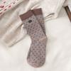 Vintage Polka Dot Stripe Button-Down Socks For Women Korean Maillard Coffee Color Contrasting Mid-Leg Socks Piled Up