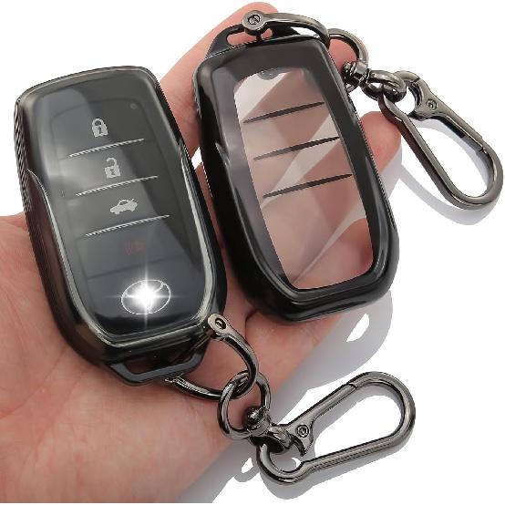 2-Pack For Toyota Key Fob Cover With Keychain Key Case Fits -2025 Grand Highlander Camry RAV4 Prime Land Cruiser Corolla Cross Tundra Tacoma Sequoia