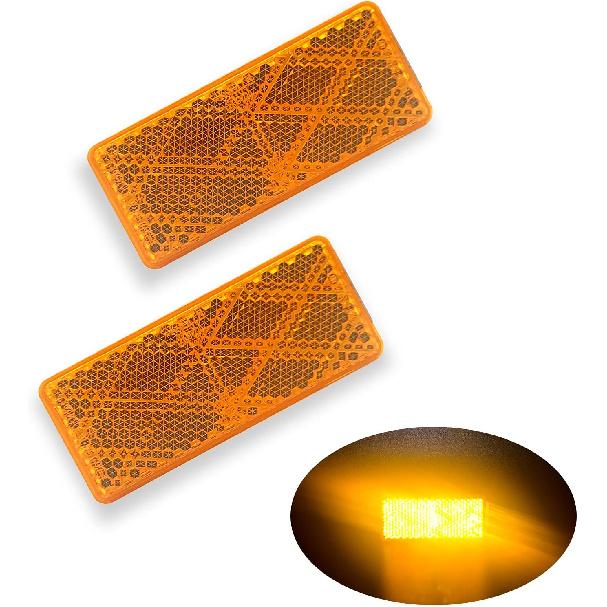 E-Mark DOT 4A CCC 2pcs Rectangle Reflector Self Adhesive Stick on Trailer Driveway Mailbox (Amber)