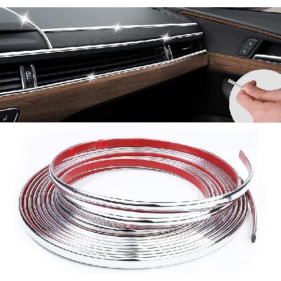 16Ft Chrome Car Trim Strip, Self-Adhesive Automotive Exterior And Interior Side Body Moulding, 1/4 Inch (6Mm) Scratch-Proof Silver DIY Accessories