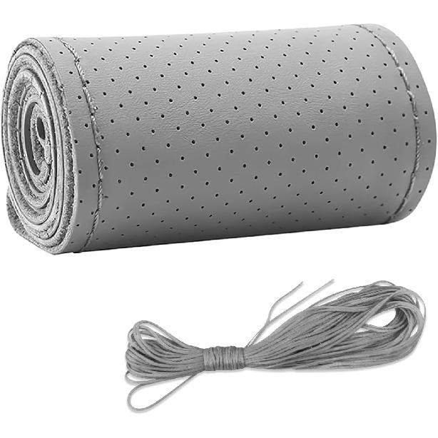 Leather Steering Wheel Cover, DIY Sewing With Needle & Thread, Breathable Anti-Slip Car Steering Wheel Protector, Universal 15 Inch Auto Steering