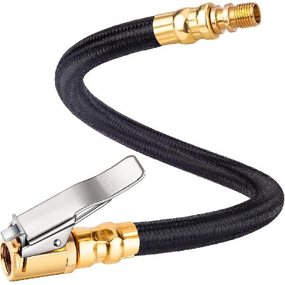 12'' Tire Inflator Extension Hose, Tyre Pump Clip-On Air Chuck Adapter for Quick-Inflation Lock, High-Pressure Tube Quick Connect for Car Motorcycle