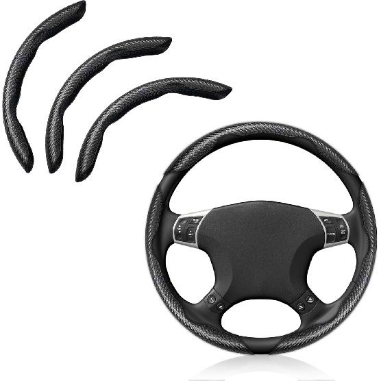 Pincuttee Carbon Fiber Steering Wheel Cover - 3PC Universal Non Slip Steering Wheel Protector, Matte Black
