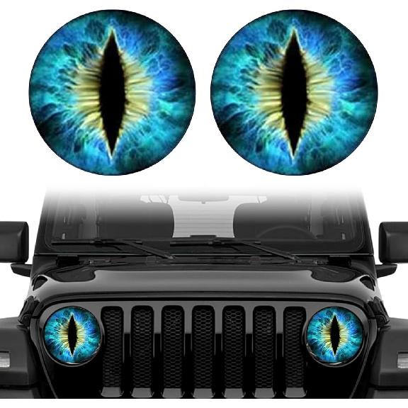 Beast Eyes Headlamp Decals for Jeep Headlights, 3D Round Funny Decals for Truck Car Body, Window, Bumper Decoration (Blue)