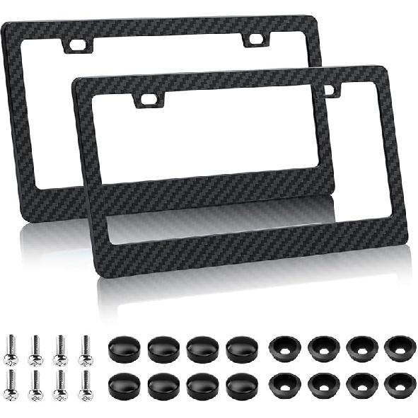 EWBN Carbon Fiber License Plate Frame,1 Pack Black License Plate Frames With Screws & Caps,Classic Carbon Fiber Design Car Black License Plate