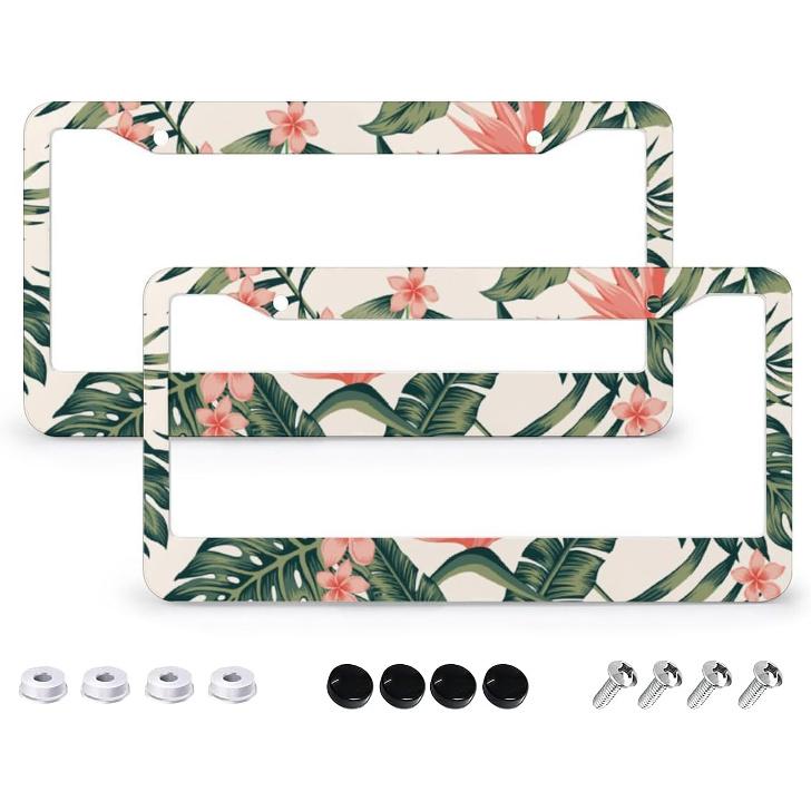 【2 Pcs Personalized License Plate Frame Designed】:Personalized tropical palm leaves pattern design carefully designed. License plate frame is printed on aluminum with advanced digital printing technology, using high quality ink for clear printing.