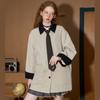 Coolhut Barn Style Color-Blocked Retro Jacket with a Turn-Down Collar, Mid-Length, Women's Trench Coat with Pockets, Casual Workwear
