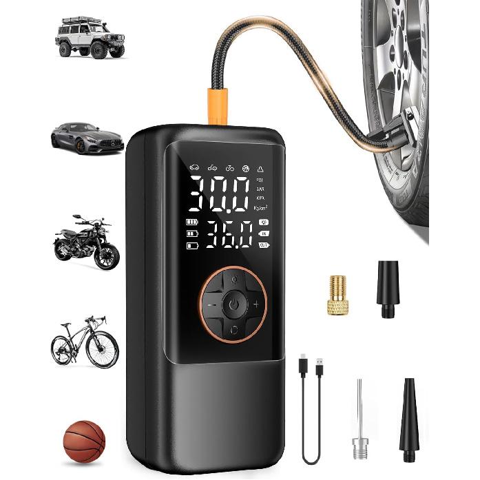 【Long-Lasting Power】tire Inflator Portable Air Compressor Combines A Long-Lasting 16000Mah Rechargeable Battery (4-6 Car Tires Per Charge) air pump ensures 40mins continuous inflation without Cord Power supply. Weighing Only About 1 Lb, Providing Great Portability And Flexibility. It'S The Ideal Companion For Road Trips And Adventure Travel.