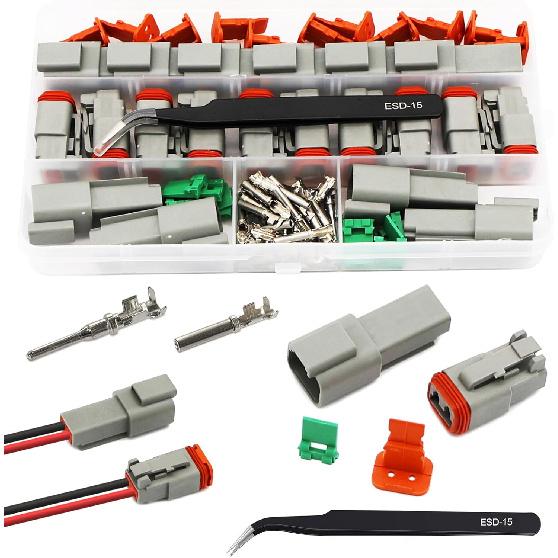 2-Pin Deutsch Stecker-Kit 10 Sätze, Graues DT Stecker-Kit, 2-Pin Wasserdichte Drahtverbinder für die Automobilindustrie, Elektrischer Steckverbinder-Kit mit 16# gestanzt