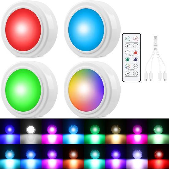【Tap & Remote Control】 Short press the front cover to turn on & change color(white,red,green,blue,colorful), long press to turn off. Use the remote to customize your favorite light color among 16 static colors and 2 dynamic modes, quick set brightness level to 25%,50%,70%,100%