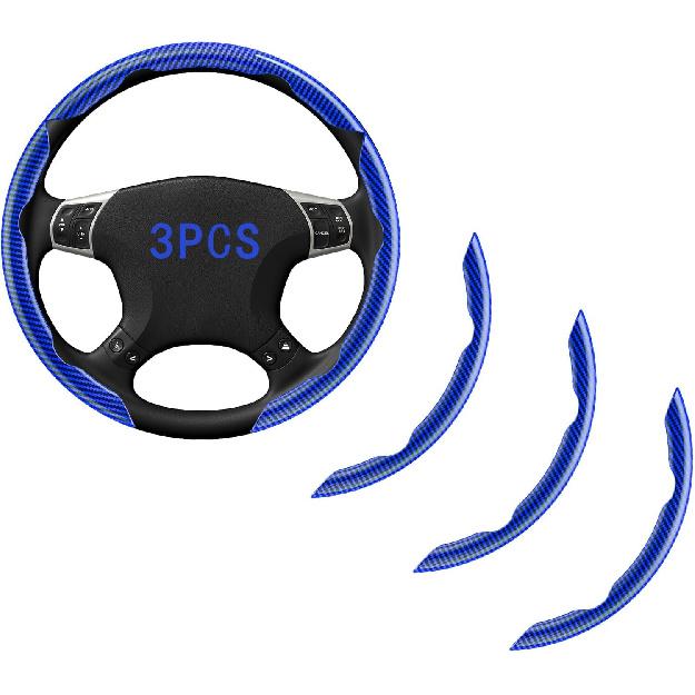 FOAN Steering Wheel Covers, 3PCs Carbon Fiber Anti-Skid Clip On Car Steering Wheel Cover Protector Universal For Most Car, Blue